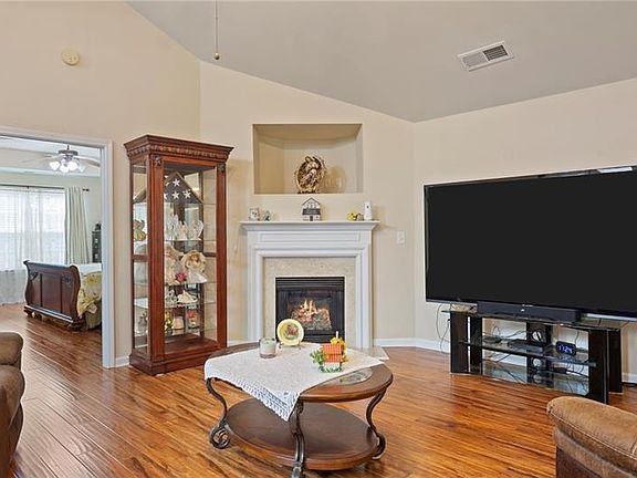 Stunning step-less ranch in gated community near 400, shopping, restaurants, greenway, schools and more! Spacious home features open floor plan w/ vaulted ceilings & sky lights in the kitchen, great room and dining area. Great room has cozy corner fireplace. Oversized master retreat features trey ceilings, natural light, walk-in closet, double sinks & rain shower head. Large second bedroom w/ large closet. Newer laminate flooring throughout home. Private screened in porch. Stone walkway leads you to the spacious backyard with huge storage shed. Backyard fully fenced. HOA includes community clubhouse, pool and front yard maintenance. Stainless steel microwave stove and dishwasher updated in 2015.