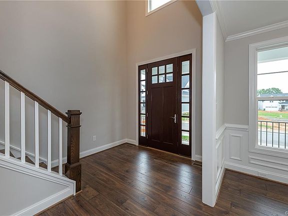 Our popular Caroline floorplan will provide everything you would need on a main level with a first floor master suite, with a ceramic tile shower, a spacious walk-in closet and laundry room. Spacious kitchen with tons of beautiful cabinetry and a huge island which opens straight into the family room, perfect for entertaining! The butler's pantry will lead you into the formal dining room with picture frame and crown molding surround! An outdoor courtyard patio is off the family room and is a wonderful outdoor space to spend with family and friends. The second floor provides two additional bedrooms with a full bathroom and a study. John Rolfe Square is close to the best of the "3 R's"...Retail, Restaurants & Recreation! Come by today to see what the buzz is about. Home to be completed March 2019.