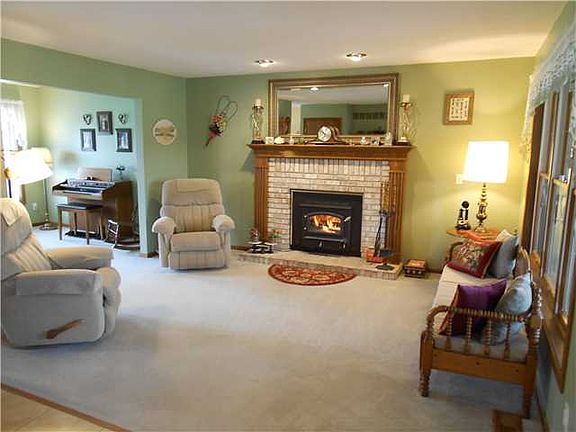 12 Acres! 4 Bedrooms, 2.5 Baths. Gourmet kitchen! New countertops, tile floors and tiled backsplash! Gigantic 4 season room! 2 pole Barns! New in 2008-High efficiency furnace, water heater, back up sump pump.