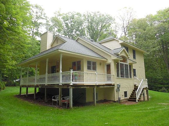 Enjoy this immaculate home in a wonderful Association with NO DUES! Home interior was just painted before it was listed. Cathedral ceilings, wood floors, gas fireplace, and a great kitchen with a dining area. Main floor master suite with jetted tub. Lower level with family room and hobby/office area & workshop. Enjoy the wrap around deck w/covered porch and large patio area. Just far enough out of town to give you peace and quiet yet close enough to everything you need. Don't miss this beautiful home!