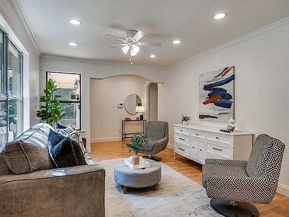 Charming home on large corner lot with fresh paint and carpet. 3 bedrooms- one is smaller more like an office or nursery. One car garage. Ready for move in NOW.