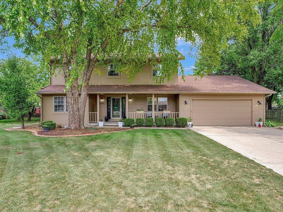 Traditional colonial located on a cul-de-sac in sought after Cherry Hills subdivision! Very well maintained 4 bedroom/2.5 bathroom 2-story with dining room, family room, and separated living room- perfect for playroom or home office! 2405 Lakewood is approximately 1995 sq ft on 2 levels with an oversized 2 car garage featuring a side exit door. Open lot that features a large river birch in back that provides ample shade for stamped concrete patio. 20'x12' Living Room features gas fireplace. Large master suite features oversized walk-in closet with built ins, and vaulted ceiling. Hardwood flooring located in most of downstairs and carpeted upstairs. All new LED lighting throughout home. Home appliances include new stainless steel French door refrigerator, new stainless-steel dishwasher, newer Samsung washer and dryer that stay, high efficiency furnace. Close to shopping, restaurants, and schools! Home is located in county and subject to LOW COUNTY TAXES. Priced to sell! Home is broker owned.