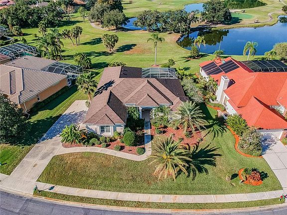 Casual elegance, very affordable. One of the lowest-priced River Wilderness homes backing directly onto the golf course. Comes with one of the finest long views available in the entire development. Awesome Christner Brothers custom-built, great bones, needs a little work and priced accordingly. Why pay for someone else's taste and style? This diamond-in-the-rough sensibly offers the opportunity to have finishing touches done your way and on your timeline. Minutes to the completed Fort Hamer bridge and boat launch. Open concept floor plan, bathed in natural light. Three sets of sliding glass panels illuminate family room, living room, master suite, all access the pool/spa area. Living room features tray ceilings, ceramic tile flooring, spectacular sunset views down the 18th fairway. Formal dining room overlooks the living room to the screened lanai beyond. Well-appointed kitchen with stainless appliances, solid wood cabinetry, walk-in pantry, an island facing the pool area. Standing at the sink, you'll never stop taking in the view. Split-plan design assures privacy in the gracious master suite. Features include tray ceiling, walk-in closet, dual-sink vanity, walk-in shower, garden tub, private toilet with bidet. At the opposite end of the home are bedrooms 2 and 3, each with their own bathroom. Oversized garage provides security for up to 3 vehicles, will delight those working on projects with abundant square footage. Home boasts fresh exterior paint, thermal windows, new roof in December 2018.