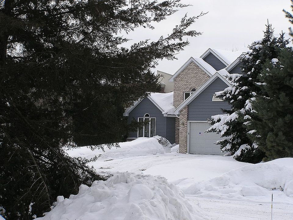 Contemporary, 2 floors plus finished basement with 8 ft. ceiling, sliding door walkout to rear yard and sculpture garden. 3 car attached garage. 3 season porch and open elevated deck. Master bedroom on 1st floor. Cathedral ceilings most of main floor. On private cul-de-sac.