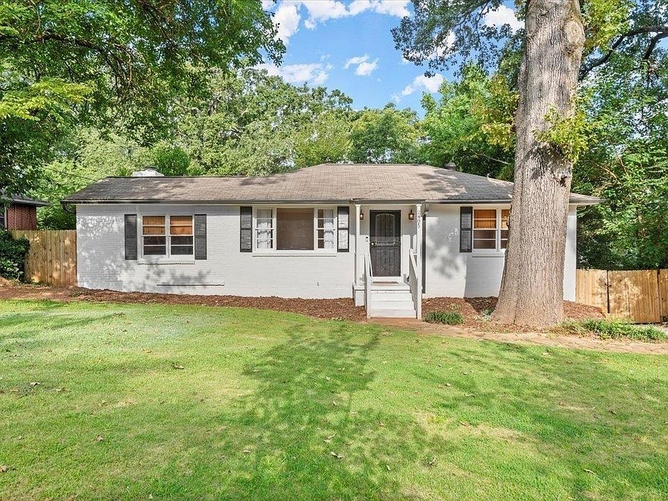 Welcome to this bright and sunny home with a freshly painted interior and exterior, original hardwood floors, quartz countertops, glass tile backsplash, stainless steel dual level workstation sink with interchangeable dual sliding platform system and single-handle, pull-down faucet with sprayer, new Bosch dishwasher, and reclaimed bowling alley flooring used to create a bar or breakfast or conversation bar with access to a sitting area ! Original hardwoods preserved in most rooms and original porch stone in den is stained to protect and preserve home's authenticity. This 4-sided brick abode provides an open floor concept perfect for entertaining friends and family, and flexibility for additional space like an office, reading room, or bedroom! You will love the flat and luscious green grass in the private, fully fenced backyard with a new back porch to hang out and relax! Large, dedicated laundry space with hookups ready to go. Close to Oakhurst, Downtown Decatur, East Atlanta and Kirkwood and lots of nearby options for locally owned restaurants, bars, markets, boutique shopping and parks that host multiple festivals, music and events. This location is tucked away one block from East Lake Golf Course on a quiet street and out of the cross-traffic. Barker-Bryant Lake is just around the corner for walking, picnics and fishing!