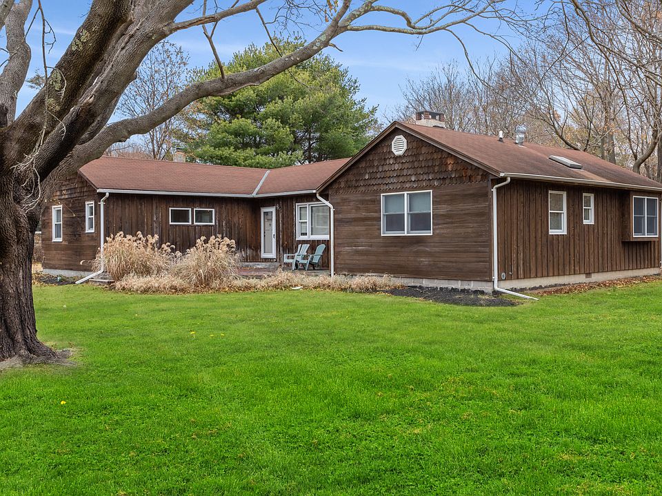 Spacious ranch style home on exceptional property with Bay access/beach down the road. Wood floors, fireplace, master bedroom ensuite, den or possible 4th bedroom. Huge back deck for barbeques and leisure relaxation. Wonderful spacious sunroom too! Detached garage or workshop with plenty of room for a pool. Must see this North Fork gem!