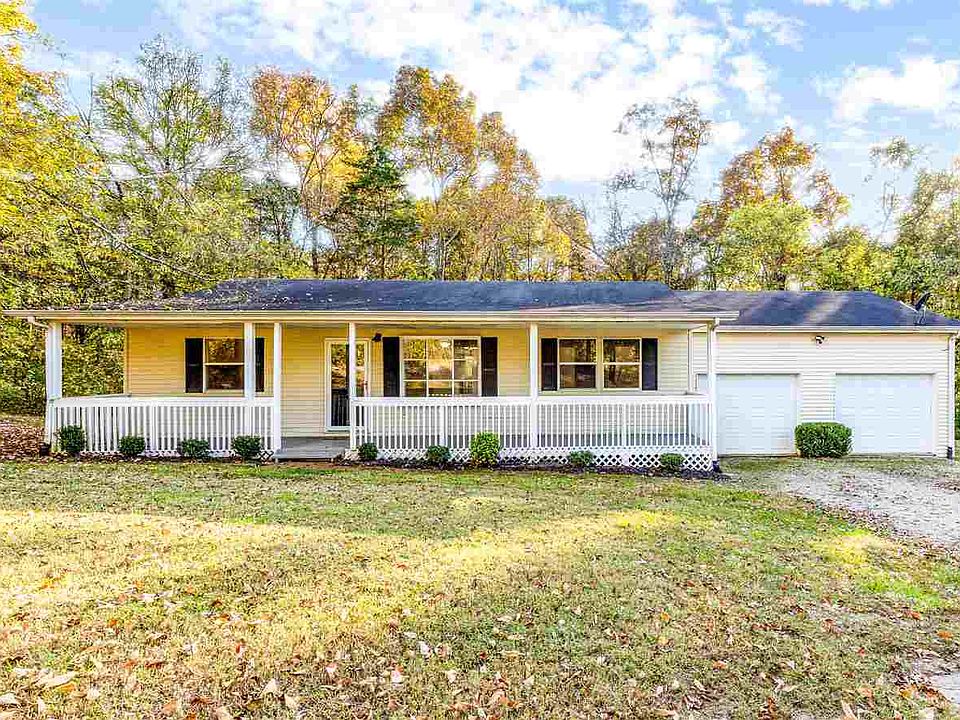 3 bedroom, 2 bath home on wooded 1.00+/- acre lot. Features include a spacious eat-in kitchen, complete with appliances, large living room, split bedroom floor plan, and two car attached garage. Very private setting.