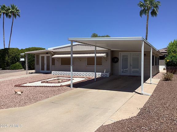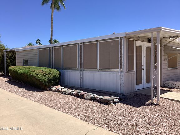 Is it time to get your home in Apache Wells? This could be your foot in the door to start enjoying a very Active 55+ Community with activities for Everyone. And they are building new Pickleball Courts this summer to add to the 4 we already have. This older Mobile home could be just what you are looking for. Both showers have been changed so you just step into them. No tubs in this home. The Arizona room on the North side is a nice place to enjoy in the Winter. Both doors in the front of the home have been replaced with French doors. The living room and kitchen are very comfortable. You really need to come see it to see all the potential. The carport structure is new in 2023. Close to shopping, hospitals, both Airports and Tonto National Forest.