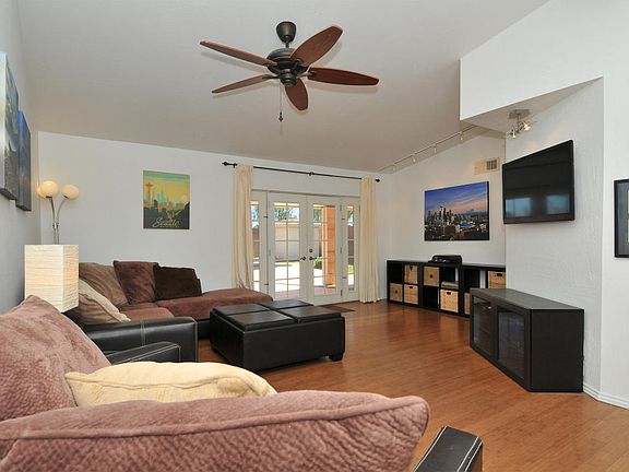 This nicely upgraded block construction home is in a perfect location close to freeway access and amenities. A large private lot with sparkling Pebbletec play pool and mature vegetation provides the setting for this charming property. The home offers master suite plus two guest bedrooms, beautiful great room with French doors and lots of natural light, wonderfully updated kitchen with brand new stainless dishwasher, newer cabinets and granite. Nice light wood-finish floors, tile and carpet in neutral colors give the interior a crisp, clean modern look. A large portion of the 2-car garage has been converted to a bonus room and can easily be returned to garage space. Owners are relocating and showing this home is easy. Don't miss this great opportunity.