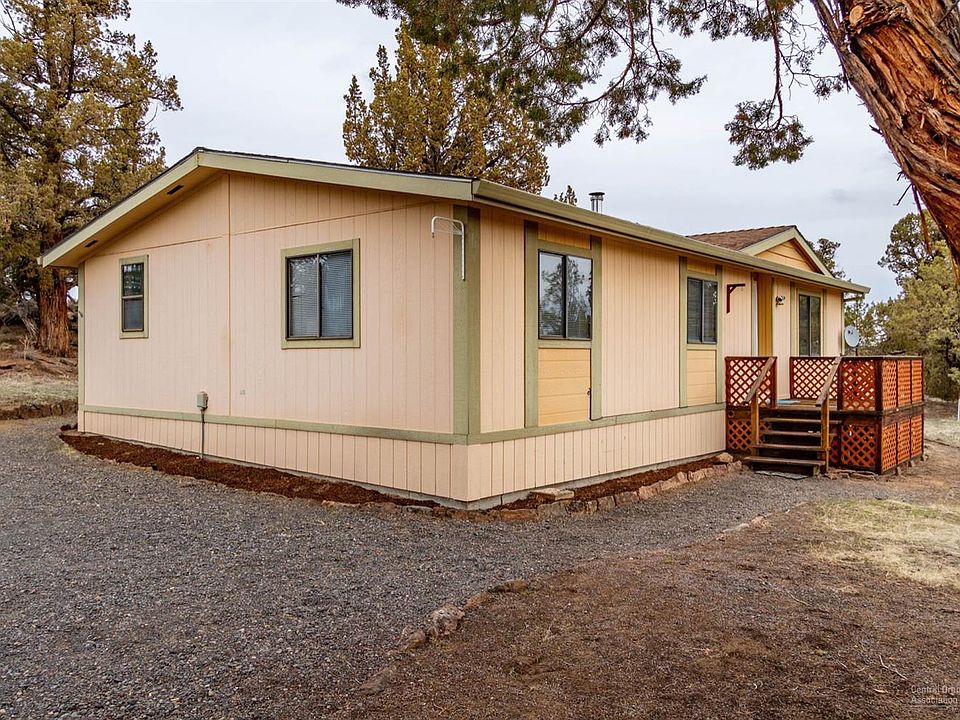 This is the one you've been waiting for! Move-in ready 3 bed/2 ba., 1296 sq.ft.home on 5 peaceful, private acres adjacent to forest lands. Vaulted ceilings, wood stove, skylight & picture windows all around. New dishwasher, water heater & roof on garage. Front & back decks. 2 car garage w/remotes, storage shed, greenhouse & sprinkler system. Level building site on NW portion of property, that boasts Cascade mtn views! Located at end of culdesac, and just minutes from amenities & nearby Eagle Crest resort.