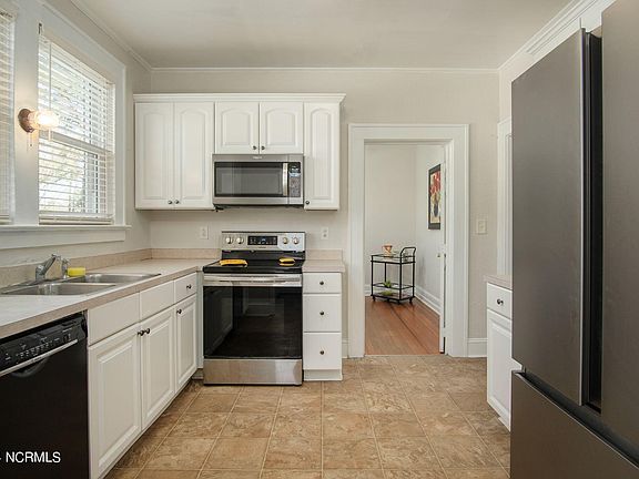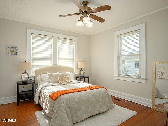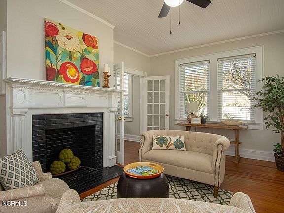 Welcome to this charming 4-bedroom, 2-bathroom brick home located just minutes away from Historic Downtown New Bern and Carolina East Medical Center. As you move onto the large open front porch, you'll immediately feel the warmth and character of this lovely property. Enter into the spacious living room where a gorgeous fireplace stands as the focal point, perfect for cozy evenings spent with loved ones. Adjacent to the living room is the dining room, offering a seamless flow for entertaining guests. The kitchen boasts ample cabinet space, ensuring storage is never an issue. Two bedrooms and a fully renovated bathroom complete the main floor, providing convenience and comfort. Upstairs, you'll find two more bedrooms and another full bathroom, offering privacy and versatility for guests. Throughout the home, beautiful wood floors add a touch of elegance and warmth. This home also features brand new HVAC, ensuring year-round comfort and energy efficiency. The fully redone crawl space provides peace of mind and added value to the property. In addition, the entire interior of the home has been freshly painted. Outside, a vast fenced-in yard awaits, providing plenty of space for outdoor activities and gatherings. A one-car detached garage with a large patio offers the perfect spot for grilling and entertaining on sunny days. Conveniently situated close to Brinson Memorial Elementary School, this home offers easy access to schools, medical facilities, and the vibrant attractions of Historic Downtown New Bern. Don't miss the opportunity to make this charming brick home your own! Call us today to schedule your private tour!