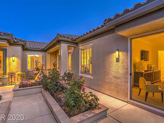 Rare Stunning 2708 sqft home, to include casita, Sun City Anthem Home on elevated 13,504 sqft lot w/ incredible views of city and mountains. Home features huge great rm floor plan w/ tons of big windows w/ spectacular views, custom iron gate open to the beautifully landscaped courtyard w/ detached casita (microwave/sink/frig) & storage garage, chef's kitchen w/ island, granite, custom cabinets w/ under lighting, breakfast area, built in refrigerator & lots of windows w/views, formal dining rm, large den, custom guest bath, master bed w/ large sitting areas to include slider w/ custom drapes open to tranquil courtyard w/ waterfall, custom built in master closet, 2nd bed w/ private bath, Hunter Douglas Silhouettes, Sunburst Plantation Shutters, custom lighting inside & out, crown modeling, intercom system, home & casita separately alarmed, all mounted televisions convey, dimmer switches, laundry rm w/ sink & cabinets, freshly painted outside, travertine flooring, water softener