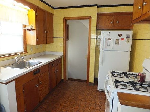 Just move-in to this well kept home,vinyl sided,newer windows,eat-in kitchen plus summer kitchen in basement,all appliances stay (as-is),freshly painted interior,wood floors thru-out all refinished,knotty pine rec room w/bar,central air,glass block windows,full bath in bsmt,walk-in closet 2nd floor,storage shed,newer roof,2 car garage