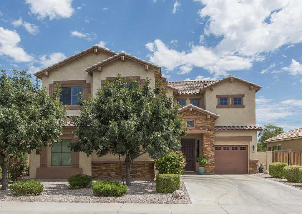 You'll love this beautiful family home offering 6 bedrooms + upstairs loft & 4 baths in 3247 SqFt. The spacious eat-in kitchen opens to the great room & features maple cabinetry with crown molding, granite counters, glass tile backsplash, under cabinet lighting, stainless appliances, walk-in pantry, 2 islands, breakfast bar seating & casual dining/breakfast room. Refrigerator included! Sliding doors lead out to the covered patio & large backyard ready for your own personal landscaped design! One bedroom & full bath downstairs. The master retreat & 4 bedrooms are upstairs & all have walk-in closets. The master has a double door entry, private bath with dual sinks, separate tub and shower & tons of natural light. Other features include a 3 car garage, upstairs laundry room, neutral 2-tone **