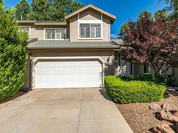 Boulder Point Townhome close to NAU, FUTS trail system and downtown Flagstaff. This 3 bedrooms, 2.5 bath 1,443 SQ.FT, 2 car garage boast loads of windows, crown molding in all the right places, custom blinds and shutters, bamboo hardwood floor in family room & dining, slate tile located at entry, powder room and kitchen. The ultra private backyard is fully fenced with a redwood deck overlooking a low maintenance backyard (Ponderosa Pines, trees & shrubs), beautiful water feature, sitting area and gas fire-pit perfect for entertaining. This location is premier. This home is a MUST see.