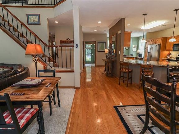 This impressive 4 bedroom, 3 bath single family home has everything you could want in a property here at Hidden Valley Resort! Great for full time living or a 2nd home, this property has a 2 car garage, is over 2,300 sq ft, has gas forced air heat, A/C, cathedral ceilings in the Great Room, stone/gas fireplace, upgraded eat-in kitchen with granite countertops, stainless steel appliances and all new lighting fixtures. There are 3 bedrooms upstairs with the master bedroom having a completely renovated master bath with walk-in shower. One bedroom on the main level. Enjoy the outdoors with a massive new deck, with trick new lighting, overlooking a pond with a fountain. HOA takes care of the landscaping around the property and it is an easy walk to the South Ridge Center with the large pool, playground, basketball court and bocci court. Immerse yourself in all that Hidden Valley has to offer you in the fantastic home!