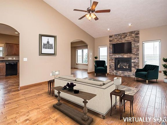 Gorgeous & Marvelously Cared For Ranch With Flowing Floor Plan & No Backyard Neighbors In Highly Desired Copper Creek! Delightful kitchen with an abundance of cabinets, dazzling granite countertops, coveted pantry, a convenient breakfast bar & sparkling hardwood floors flow into the spacious & sun-filled dining room with sliders to massive deck. Open living room with fabulous stone-encased gas FP, vaulted ceilings & wonderful hardwood floors. Master suite with tray ceiling, double vanity & large walk-in closet. Two more sizeable bedrooms & a full bath on the spacious main level. Lower level features a ginormous family room with a second stone-encased gas FP & bar area, perfect for entertaining. Two additional spacious bedrooms & a full bathroom. Convenient main floor laundry, an oversized three stall garage, and a huge, landscaped yard that backs up to an open space. A don't miss spectacular home close to schools, parks, shopping & entertainment with easy access to all Sioux Falls!