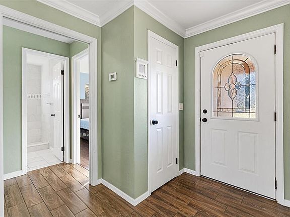 - Ceiling Fan(s), Crown Molding, Open Floorplan, Primary Bedroom Main Floor, Solid Wood Cabinets, Stone Counters, Thermostat, Walk-In Closet(s)