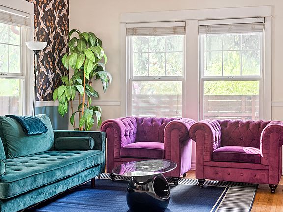 You'll love this cozy and stylish retreat fully equipped for longer term stays. Located in the quiet Brooklyn neighborhood and featuring a fully fenced yard with high ceilings and an expansive kitchen. The home has a high spacious ceilings, full washer & dryer, a dedicated working space, and updated kitchen. This is great place to stay while exploring the Portland Metro area! THIS IS A FURNISHED, MID-TERM RENTAL. 30 DAY MINIMUM. The property is the left unit of a duplex. The other side's tenant is very quiet and friendly. There is a shared wall between the units. Noise transfer is rare but may be present. The house as central AC and heating controlled by the Nest thermostat. The washer dryer is full sized. The square footage is approx 1,500 SF. The back yard has a plenty of space, a working BBQ, and is fully fenced and high enough to give you plenty of privacy. The kitchen and dining room are located at the back of the unit and open up to the backyard. The primary bedroom is located on the first floor with a king bed and walk in closet. The guest bedroom is upstairs and connects to the half-bathroom and has plenty of storage space and hangers. There is hardwood flooring throughout the house and both bathrooms are tile.