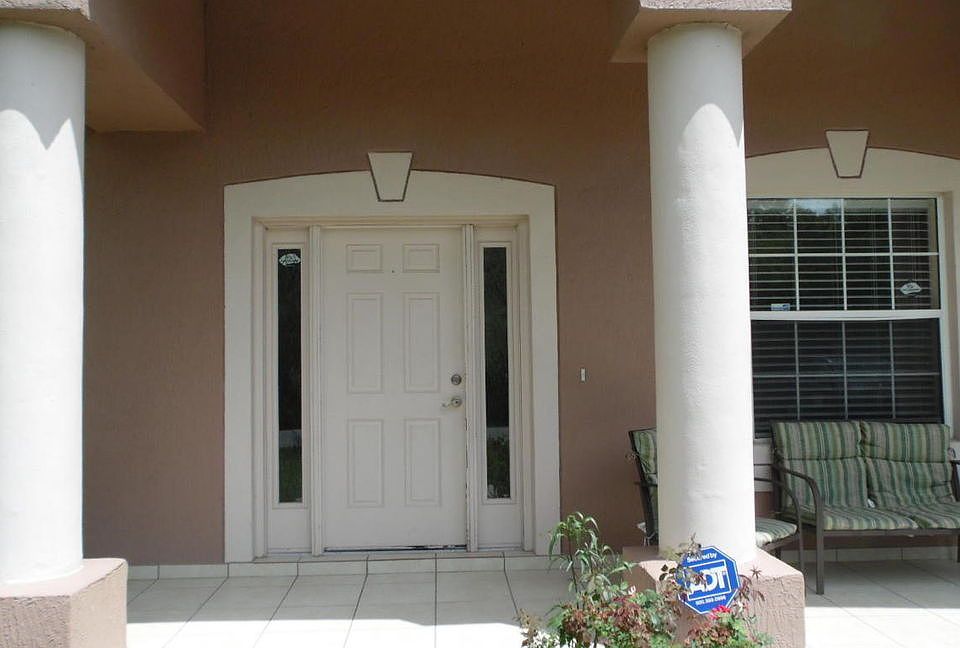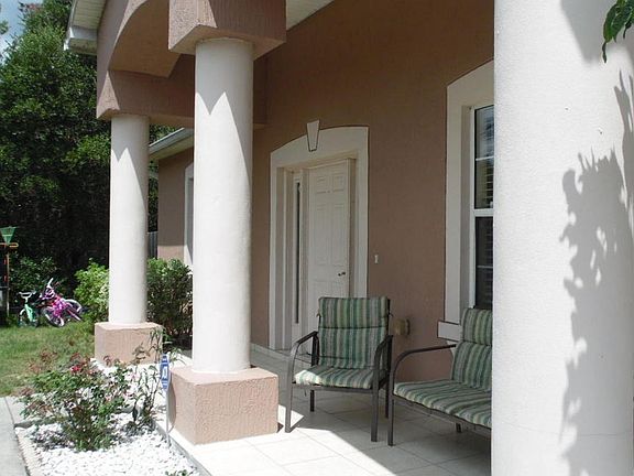 Awesome home!You will not believe this lanai it is 45 X 17! There is also a walkway on the right side of home with decorative rocks and flowers. The home is completely tiled. The kitchen is open to the family room and has island with electric, pantry and wood cabinets. The guest bath has tub and shower combo with grab bars.The large master bath has a separate shower and tub. Master closet is large enough for all of your clothes.All of this and there is a formal living room and dining room and family room. There is a 10 X 20 storage building. New drain field in 2015. All this an inside laundry! TV on lanai and white refrigeration do not convey. The SS refrigerator on lanai will stay.