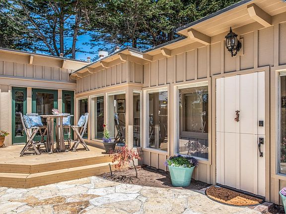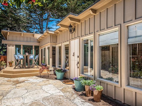 Welcome to your own private oasis in Carmel one block off of Scenic Ave! Let the smell of the salt air & the sound of the gulls transport you to a simpler time of carefree summers & sandy toes. As you enter the front gate, the courtyard with multiple sitting areas & hot tub beckon you to relax & enjoy 'the good life.' Upon entry, the primary level of this board & batten home boasts the master bedroom,an additional bedroom with en-suite bathroom as well as the main living area kitchen~great room combo all surrounded by walls of windows to take in the peek of the ocean view & 7th fairway at Pebble Beach. The downstairs living area consists of a 2 bedroom suite with shared bathroom as well as another bedroom with en-suite bathroom and 1 car garage. The beauty of this property is the prime location of Carmel Pt & also being 1 block off of Scenic Avenue so you can quickly get to the beach but not be surrounded by the car & pedestrian traffic. Now is the time to live your dream at the beach!