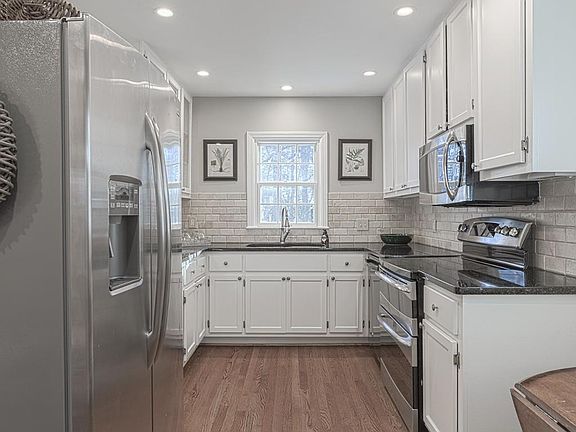 - Kitchen Features: Cabinets White, Breakfast Area, Counter Top - Stone