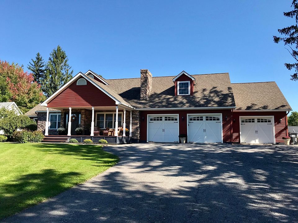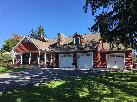Absolutely stunning Cape style home situated on 1.80 acres of park like property. Home features a chefs dream Maple kitchen with top of the line appliances, including a 6 burner commercial stove and a GE Monogram refrigerator/freezer. A large 4' x 11' island, all granite countertops and a tile floor with radiant heat. Formal dining room with hardwood floors, a formal living room with pellet stove and huge family room with a gas fireplace. Sun room off of the family room, a rec. room with custom built bar, pool table, build in Dolby surround sound and hardwood floors. Nice office and 1/2 bathroom, mud room and laundry room, (washer and dryer included), also on the first floor. 2nd floor has a master suite with sitting area, a gas fireplace, nice windows overlooking the back yard and pool and it's own full bathroom with whirlpool tub and custom built in tiled shower. 3 more bedrooms, (another with it's own full bathroom), and another full bathroom on the 2nd floor for a total of 3 bathrooms upstairs. Basement is finished into another nice family room with built in's and a great gym area with a pellet stove, (ask about available furnishings in the home). 3 car garage, a shed and beautiful fenced in in ground pool with it's own pool house.