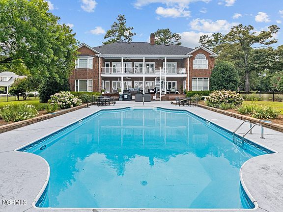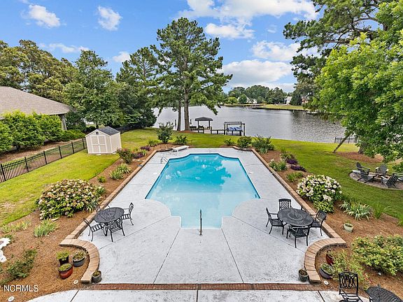Gorgeous executive home w/all the features you can imagine. As you enter the circle driveway to this over 1 acre lot, you will appreciate the double doors that lead to a foyer featuring carrera marble & a curved staircase that leads to an upstairs balcony. Many rooms have hardwood floors just like the dining room which features dental molding & plantation shutters. The formal living room boast tons of natural light w/french doors, oversized windows, extensive trim, stone fireplace & gas logs. The kitchen features a natural gas cooktop, granite countertops, double wall ovens, intercom system, movable window bench seat, custom china cabinet & tons of cabinets & pantry. Just a few steps away is a butler's pantry w/sink & updated powder room. The downstairs also features a reading nook w/built in bookcases, billards room w/built ins & fireplace. Connecting to this room is a heated & cooled sunroom as well as a guest bedroom w/full bath. The upstairs master en suite features a fireplace, raised flex room that currently being used as a gym, 2 walk-in closets & 2 mirrored wardrobe closets. The newly renovated en suite bath features porcelain floors, an oversized marble floored shower, dual shower heads, freestanding soaking tub, dual vanities, custom linen closet & plantation shutters on the windows that overlook the river. You can access the upper exterior balcony from the master bedroom. The remaining 3 upstairs guest bedrooms have a water view and while one guest bedroom has a built-in window seat, walk in closet & bathroom that is shared with the rec room, the two other upstairs guest bedrooms have a built in desk/bookshelves & they have access to a hall full bath. The outside offers so much for all ages whether it be sitting at the upper or lower balcony, relaxing in the hot tub, soaking or swimming in the in ground pool, resting at the fire pit or sitting at the dock that provides an outdoor shower, boat lift & oversized boat slip. This home has it all.