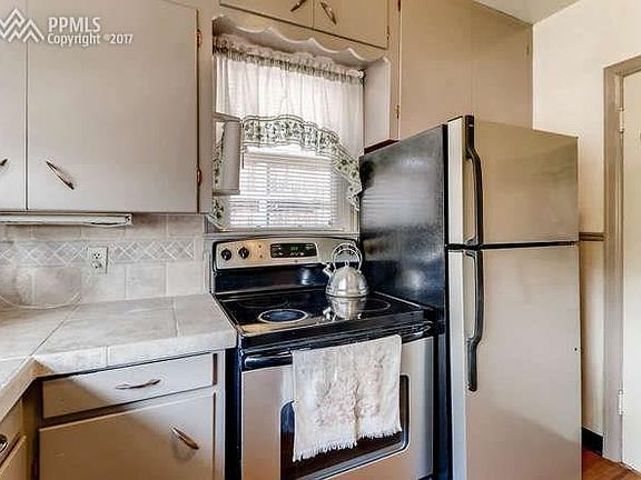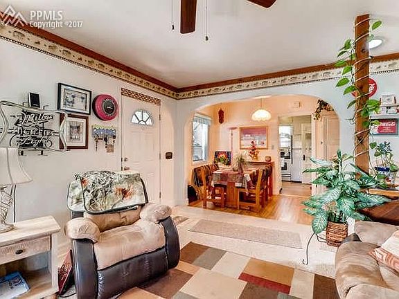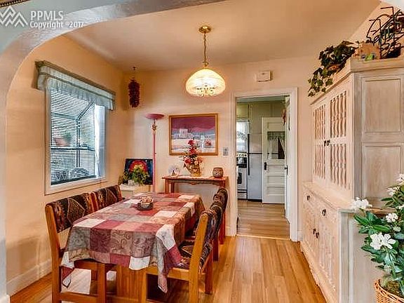 This charming home is just a few blocks from Penrose Main Hospital. It's at the end of a quiet street, and the Pikes Peak Greenway trail runs along one side of the property. When you sit on the covered deck, you can hear Monument Creek flowing by. The house is shaded by giant cottonwood trees, and the rest of the landscaping in the yard is fully mature. Inside the home the living room is separated from the dining area by an archway. There's a cheery kitchen w/ tiled countertops & backsplashes, 2 bedrooms, & a tiled bath.