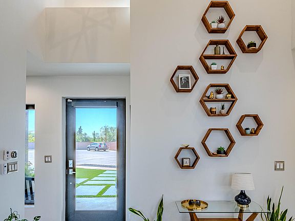 Custom North Valley Home in a gated community off Rio Grande Blvd. Exclusive opportunity to own a beautifully built modern designed home with luxury high end finishes and details in every corner! Built in 2022, this home has low maintenance landscaped front and back yards, Stainless steel appliances, wine fridge, custom gas log fireplace, vaulted ceilings, marble tiled flooring, custom features, Insulated Concrete Panel (ICP) construction, energy efficiency at it's best! This home has it all! Think Malibu high end home on a quiet cul-de-sac road in a safe small community and close to numerous amenities! If you like modern, if you like luxury finishes, if you like a gated community then what are you waiting for?