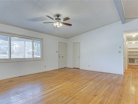 One level midcentury modern home in fantastic location. Great Room with volume ceilings. Spacious Kitchen has tile flooring. ample updated countertops with bar seating & cabinetry. Primary Bedroom with double closets, BR3 with walk-in closet & additional clothes closet. Bathrooms with updated vanities, lighting & tile flooring. Hardwood floors throughout most of the home. Bonus Room with newly installed LVP flooring adds an additional 325 SF. Large Laundry Room with new flooring. Rear deck & patio, Circular drive, large storage shed, New Water Heater '24, New Roof '24