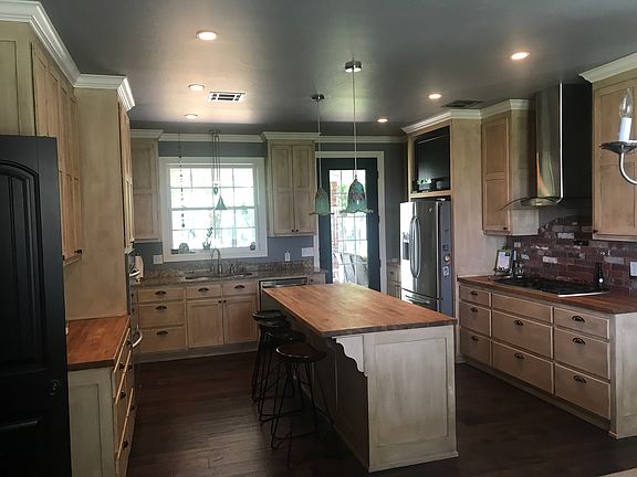 Beautiful home; hard wood floors installed throughout with recycled brick in bathrooms and laundry. Jack and Jill layout, open floor plan. Walk-up attic with lots of floor space. Brand new sprinkler system. Water softener, oversized two-car garage. Large front and back porches. Outdoor fireplace with safe room built in. Huge liner pool with diving board, concrete surrounding, and fencing with child safety locks. Brand new liner going in. Approx. 30x50 shop. 3 year old roof with fire retardant shingles for insurance discount. Lots of special features and uniqueness with this home. 2 1/2 acres, lots of grown trees