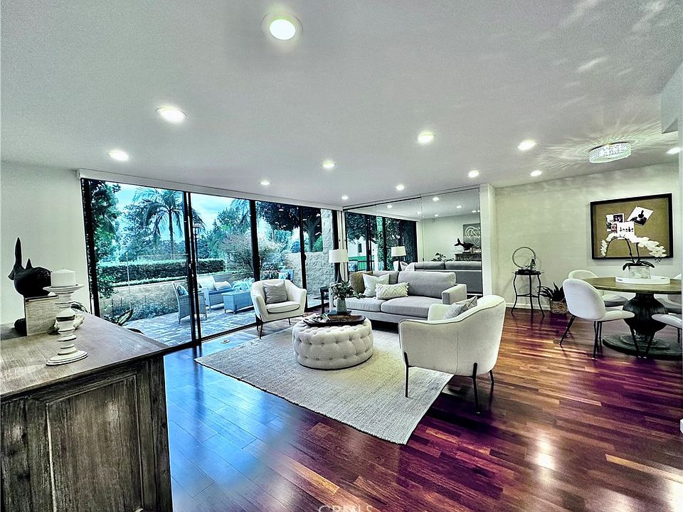 Welcome to your dream home at The Towers in Laguna Woods! Discover the epitome of luxury and comfort in this upgraded 2-bedroom, 2-bathroom ground floor home with a spacious brick patio and beautiful, mature gardens. With its prime location and stunning features, this residence offers an exceptional living experience. The ground floor location provides easy access and a private outdoor space, perfect for relaxing and entertaining. The unit boasts authentic Brazilian cherry wood flooring, enhancing the warm and inviting ambiance. The upgraded kitchen offers modern appliances, stone countertops, marble backsplash, and ample storage including a pull-out pantry. The primary bedroom has a large en-suite bathroom with step-in shower and a large walk-in closet. The unit also includes recessed lighting, scraped ceilings, new high-end carpet in the bedrooms, added storage closets, and fresh paint throughout. Living at The Towers grants you access to a range of resort-style amenities, including a meal plan in either of two in-house dining rooms, social activities, 24 hour building concierge, maintenance, utilities, and housekeeping every other week. You’ll also appreciate the peace of mind that comes with gated access and 24-hour security. The 55+ community located in the heart of Laguna Woods offers a vibrant and active lifestyle including amenities such as golf courses, swimming pools, pickleball courts, fitness centers, an equestrian center, woodworking shop, arts and crafts center, social clubs, and the Laguna Woods bus system, all in a location that boasts a short drive to stunning beaches, trails, shopping and dining options. This home is a unique gem in The Towers community, providing a harmonious blend of style, space, and a fantastic location. Don't miss your opportunity to make it your own. Schedule a viewing today and experience the luxury and convenience this home has to offer!
