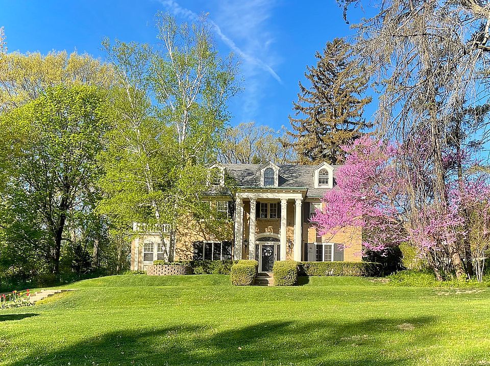 Stately colonial, with towering pillars, greets you as you enter this all brick 4 bedroom, 3.5 bath, 2 story home! New roof in 2017 and freshly painted. Gourmet updated eat-in kitchen has cherry cabinetry, granite, and stainless steel appliances. Volume formal entry, large living room with fireplace and bonus room, beamed ceiling in family room on mezzanine, and formal dining room with built-ins. 3rd floor storage and bonus room. Spacious bedrooms including dressing room and private balcony in master. Arched doorways, hardwood flooring throughout, 6 panel doors, french doors, and built-in closets in abundance! Over 3,700 square feet. Old World Charm!