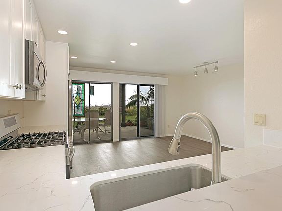 Gorgeous panoramic lagoon and ocean views! West of I-5. Take in the view from the downstairs patio or private upstairs deck. Freshly remodeled this unit features 2 beds, 2 baths, full-sized laundry, and a spacious 1-car garage. Quartz Countertops, soft-close cabinets, vinyl flooring, new carpet, fresh paint. This is beach living with a modern feel. Enjoy ocean breezes and amazing sunsets year round, truly unparalleled ocean/lagoon views. Easy access to I-5 & minutes to beach, downtown Cardiff, shopping & restaurants. Community pool & spa. No neighbors above or below. Available Now!