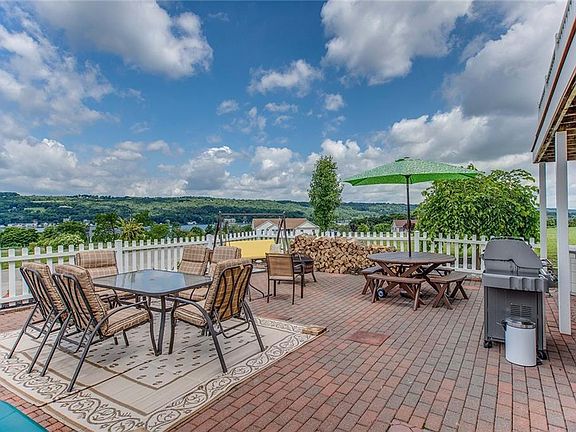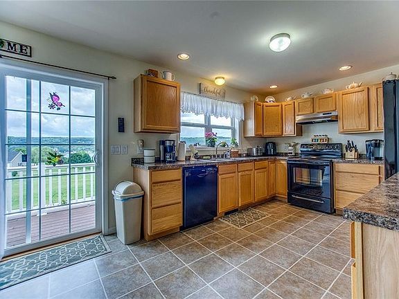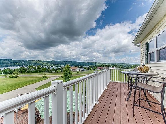 Spectacular Keuka Lake views from this 3 bedroom, 3 full bath home! The 2009 build is situated on a large grassy yard in a private community just minutes from Penn Yan with public utilities. On the main floor the living, and kitchen with open dining area face your lake view. Large windows catch sunset views at the end of the day. Wake up to the lake in the master suite with one of two upper decks walking out to an elevated vantage point. Three total bedrooms include the large master suite, another large bedroom on the main floor, one bedroom downstairs with a potential 4th bedroom or office. Two living areas, tons of storage, an attached 1 car garage, central air and beautiful lake facing patio area all close to Keuka Lake, marina, and golf course! Come check it out!