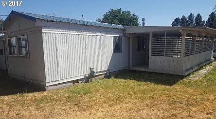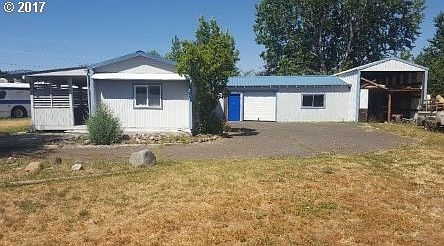 Great starter single wide in great shape on its own property! Move in ready! Close to schools and shopping in a quiet area. Big yard with lots of options. Beautiful covered deck to lounge and BBQ. Refrigerator, Dishwasher, stove/oven, and washer dryer included! Gas forced air heat and a gas stove in the living area. Oversized single car garage with shop, 504 sf. General purpose out building and a 320 sf. shed. See it today!