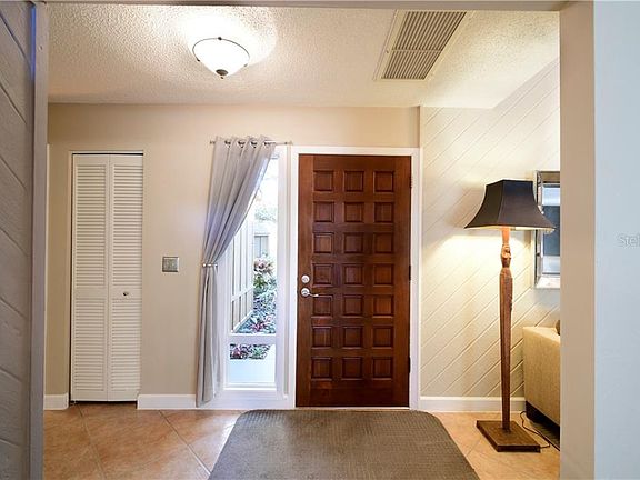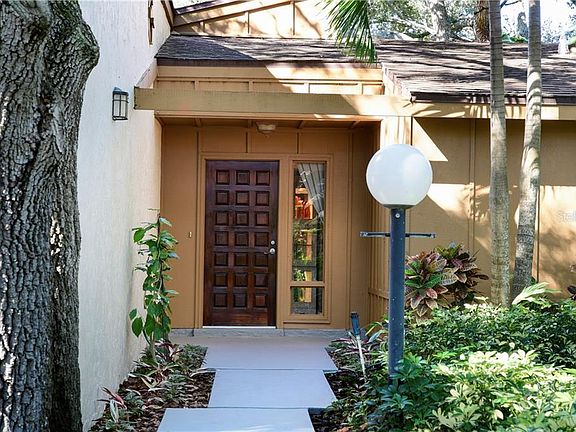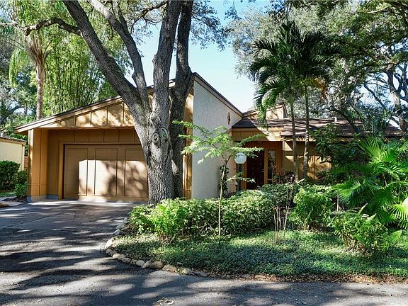 SIMPLY STUNNING and beautifully updated. This 1464-square-foot Patio home is move-in ready and features openness accentuated by vaulted ceilings in the living room and master suite, both of which open onto lanais and a screened pool deck. The small pool has seating with bubbling jets. The home has 3 bedrooms and 2 baths. The kitchen features new appliances, custom solid wood cabinetry with soft-close drawers, under-cabinet lighting and an attached island. Interior amenities include ceramic tile throughout, custom rugs with thick pads and Lyteworks fixtures. Added features include a closed new fence that contains the pool cage and pavered patios on either side, as well as an outdoor shower. Mature landscaping borders all here. The landscaping in front is professionally maintained with sprinklers on a timer. The garage is recently refurbished with all utility connections updated and studded-in custom shelving. 2019 AC and 2019 hot water heater. Roof is 2010. This pet and age friendly subdivision with very affordable monthly condo fees that include cable, community pool, grounds maintenance, manager, tennis court and pool. (One or more rooms is virtually staged)