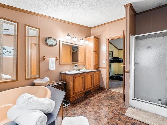 Are you looking for a modern, open layout? This striking 3 bedroom, 2.5 bath manufactured home welcomes you into fluid, open living space that is equally suited for entertaining and every day family life. An abundance of windows bathes the interior in natural light, and 2x6 exterior framing promotes comfort and energy efficiency. You’ll love the newness and space afforded for your tools and toys in the 24x24 garage. A professionally designed brick-paver patio connects the home and garage and is the focal point of a backyard that is well-prepared for summertime fun. Postured on 1.3 acres on a no-through street, look forward to plenty of yard for your kids or pets to roam.