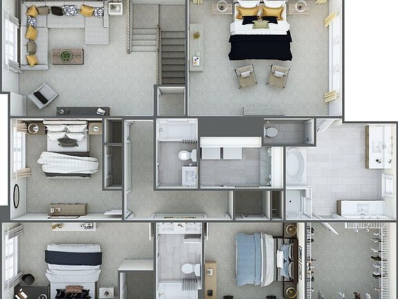 NORTH FACING HOME! POND VIEWS IN BACKYARD!! This new two-story home is located within the town of Fuquay Varina, NC and features an open airy design which keeps the whole home filled with sunlight. Plan 5 offers a 2-bay attached garage, 1ft floor guest bedroom w/ full bathroom, a spacious office, a gourmet kitchen featuring gas burners and shimmering stainless steel appliances — all complimented by a stunning island. Across from the kitchen there is an included 12' sliding glass door and a screened porch looking over a beautiful backyard. Back inside, you can welcome guests into the spacious great room. This home also includes a tankless hot water heater and a fully insulated garage. Upstairs, there are 4 bedrooms & 3 full baths, including the primary suite which includes a luxury shower. It’s life-changing by design™.