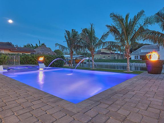 Bring your big boats! South Exposure. Quality was our first consideration when designing and building this brand new contemporary masterpiece on over a 95' lot, directly on a 102ft wide deep water canal, with quick ocean access. Great home for large or multiple boats. Walk through the front door to a beautifully open and versatile great room with gorgeous tall ceilings and crown molding. The home was installed with impact-resistant, tinted windows and sliding doors. Upon opening the sliding doors you view the magnificent infinity pool and spa with custom water features. If staying indoors, simply relax in this tranquil 4590 square foot living area under ai