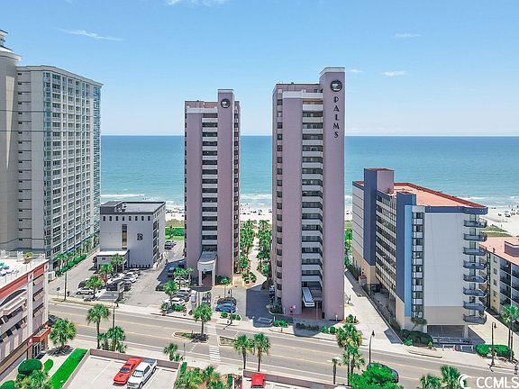 This Direct oceanfront condo in "The Palms", is a rental machine, with outstanding rental history. Great investment opportunity or vacation home! This turnkey unit features full size kitchen, two queen beds and a Murphy bed. "The Palms" Resort has great amenities which include an oceanfront pool, an indoor pool, hot tubs, a kiddie pool, exercise room and direct beach access via the ocean front lawn complete with chairs for sunbathing! "The Palms" is located ON the Beach, close to the Boardwalk, Market Common, Broadway at the Beach, Airport plus lots of restaurants and entertainment venues.