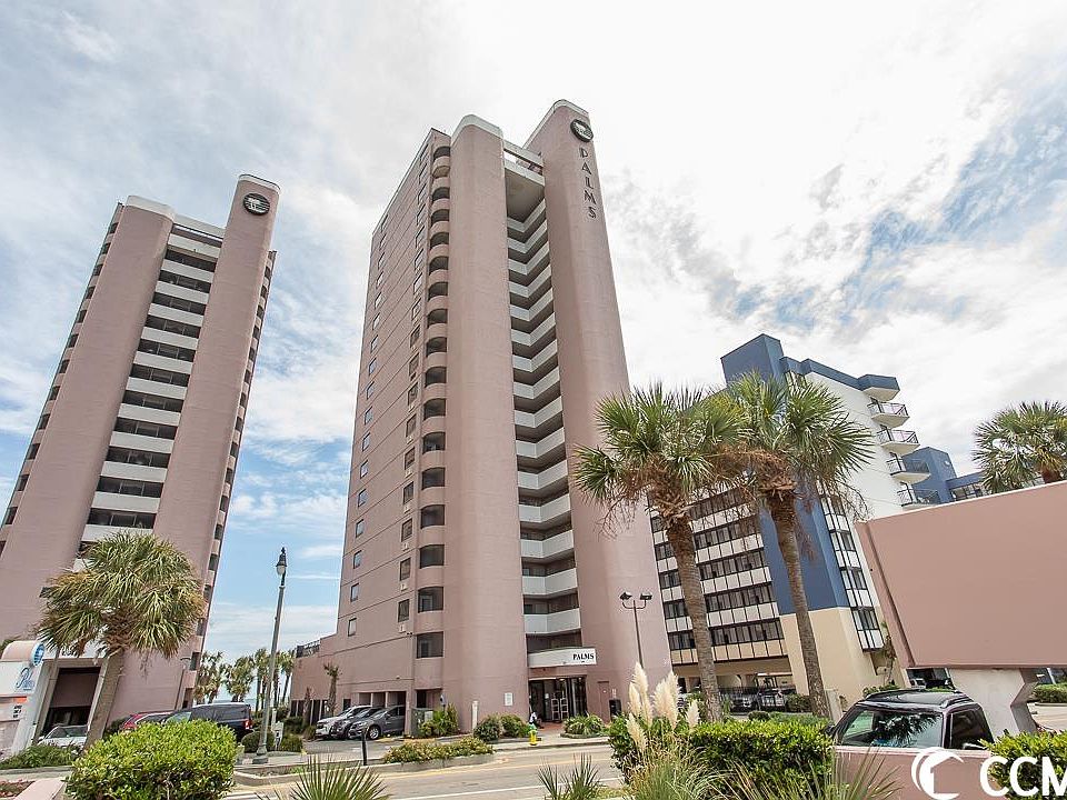 Direct oceanfront and magnificent 5th floor views from this 1 BR End Unit condo in "The Palms". Not Rented. Pristine Owner use only. This condo has been completely refurbished in 2021 and 2022. No expence has been spared. Down to the Walls and ceiling being stripped, resurfaced and smooth premium paint. New LVP flooring & carpet. 2 - Queen Beds. New kitchen and appliances with Granite countertops, new ceiling fans, new TVs, new High Quality living room & kitchen furniture. Bathroom has been remodeled with new sink, granite top, new toilet, new flooring, new premium tiled shower/tub and Glass Surround. No need to use the public washer and dryer, NEW stacked Full size Washer and Dryer, New Water Heater. New HEAT PUMP SYSTEM a Huge upgrade. For an amazing clear Ocean View owner installed New Storm rated triple pane Ocean View Sliding Glass doors and panels with New Threshold and sealed balcony floor. New Steel Entry Door. New door on the screened "rear" balcony. New door and Storage closet on the "rear" screened balcony. New roof 2022. Amenities include Beach access, showers, indoor and outdoor pools, hot tubs, fitness center and laundry center. "The Palms" is located ON the Beach, close to the Boardwalk, Market Common, Broadway at the Beach, Airport and lots of restaurants and entertainment venues. This is a Condotel. Check with your lender Before making an offer.