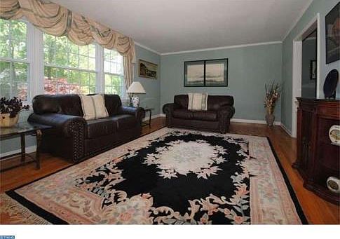 This beautiful 4 BR, 2.1 BA home in the sought after Chalfonte community boasts a long list of great updates and amenities. Stepping inside you'll immediately notice the spacious entry foyer with large coat closet and beautiful hardwoods that extend throughout much of the first and second floors. To the left is a large living room filled with sunlight from the large window that flows into a spacious dining room, which features a built-in corner unit. Next, step into the eat-in kitchen where you will find gorgeous granite countertops, ceramic tiled floor, a double sink, and new refrigerator and cooktop. Continuing through the kitchen move into the great-sized family room with stone fireplace and a recently remodeled powder room with cherry vanity and granite counter tops. Off the family room is also a large all-season heated sunroom with ceiling fan and tempered glass windows. Just upstairs four spacious bedrooms all with hardwood floors, custom made vertical blinds and large closets. The master suite features a large walk-in closet and newly remodeled bath with a cherry vanity, Italian porcelain tile, LED light and Panasonic exhaust fan, and 4-jet shower panel. The shared hall bath has also been newly remodeled and boasts an oak vanity with granite counter top, Italian porcelain tile and a 4-jet shower panel. The full unfinished basement and 2 car-garage offer lots of storage space. This property also features a large backyard with mature trees that offer privacy. Other recent updates include fresh paint in most rooms, new interior doors (2015), new washing machine (2015), new windows throughout (2011), new stair handrail (2011), new garage door (2011), roof with 30-year warranty (2006), tiled front porch, and newer air conditioner.