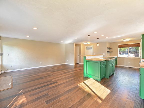 Discover the countless upgrades in this immaculate East Medford residence! Nestled on a private flag lot, you'll find ample parking. Step inside to experience a warm and inviting color palette that unifies the open floor plan, featuring new laminate flooring, fresh paint, and updated stone accents on the cozy wood-burning fireplace. The fully remodeled kitchen is a showstopper, a sleek tile backsplash stretching to the ceiling, butcher block countertops, and top-of-the-line stainless steel appliances. Plus, there's room for negotiation on a built-in fridge. The spacious primary bedroom is accompanied by a fully renovated en-suite bath with a walk-in shower and a vanity area. The guest rooms are generously sized and share a remodeled guest bath, and you'll appreciate the roomy laundry area with ample storage. Outside, the property boasts a good-sized fenced backyard, a charming, shaded patio, and an elevated deck, perfect for hosting. Schedule a showing today!