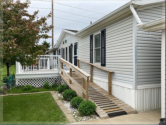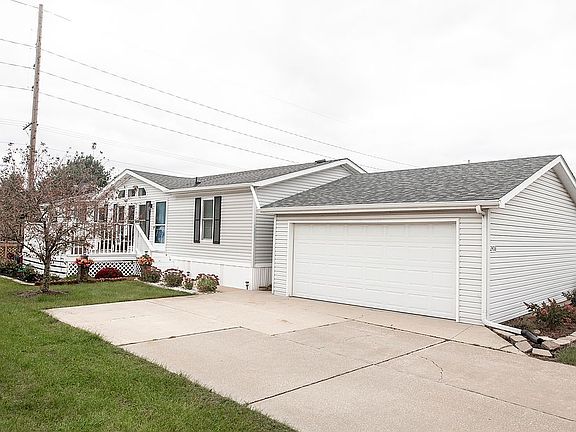 3 BR, 2 BA double wide, remodeled manufactured home in Parkview Village all ages community. Built 1998. 1680 Sq Ft. 2 Living Areas, open concept kitchen/dining/family area. 2 Fireplaces: 1 gas, 1 electric. Whirlpool tub and walk in shower in main bath. Walk in closet in main BR as well. 2 decks. Ramp to front deck/front door. Large 2 car detached garage. New windows and flooring 2019, refrigerator new in 2020, garbage disposal added 2020, new roof 2021, new hot water heater 2021, new furnace and thermostat 2022. Gas range, over stove microwave, dishwasher, washer/dryer, and central air included. Lot Rent ($650/mo) and approved application required by Park View Village. Village Website: https://www.bayshorehomesales.com/communities/ParkViewIA?utm_source=GMBListing&utm_medium=organic