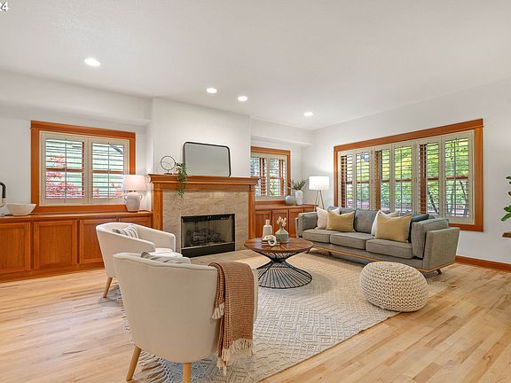 Price reduced!! SW living at its best! Light-filled, generously spacious, exquisitely built, and PRIVATE. Nestled in the trees and conveniently located, this 5 bedroom, 3 and a half bath home is perfect for entertaining as well as for nature and community access. Featuring an expansive open floor plan, formal dining room, retreat-like primary bedroom on the main, oversized bedrooms upstairs, generous deck, soundproof music room, and over 4500 square feet of living space, this ample home with storage aplenty is crafted with exquisite detail, showcasing rich vertical grain fir doors and woodwork throughout. Its clever distribution of living and sleeping spaces between two floors, and its second kitchenette downstairs, make the home ideal for multigenerational use or ADU/vacation rental income generation. Buyer to do own diligence. Surrounded by lush landscaping, the property also offers a 3-car garage, with plenty of room for your bikes and kayaks, and a flat and spacious driveway- perfect for games and activities. Conveniently located near walking trails (just blocks to the Marquam trails), parks, OHSU, and downtown Portland this home is situated in a top-rated school district (just a 10 minute walk to Ainsworth, sidewalks all the way!). A truly fabulous find in one of Portland's finest neighborhoods! [Home Energy Score = 4. HES Report at https://rpt.greenbuildingregistry.com/hes/OR10229802]