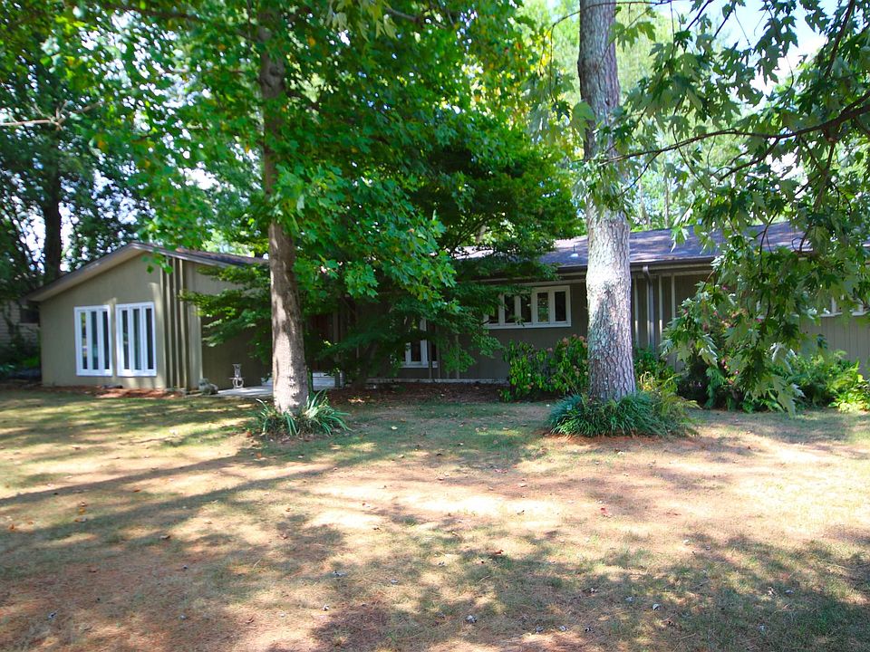 Super neat Mid Century Contemporary on a wooded Stratford Road lot! This home has fantastic bones, with loads of contemporary style. From the stone porch, to the floor to ceiling windows, to the great layout - you'll love the classic feel of this 3BD/2BA home. You'll love the kitchen with it's string of windows over the kitchen sink. The den has a cozy fireplace, a reading nook, & French doors that open to a sunroom that spans the back of the home. The formal living and dining also feature French doors to the sunroom, as does the Owner's Suite. Both bathrooms in this home have been completely updated. The owner's bath has awesome shower and dual vanities. Storage building and fenced yard.