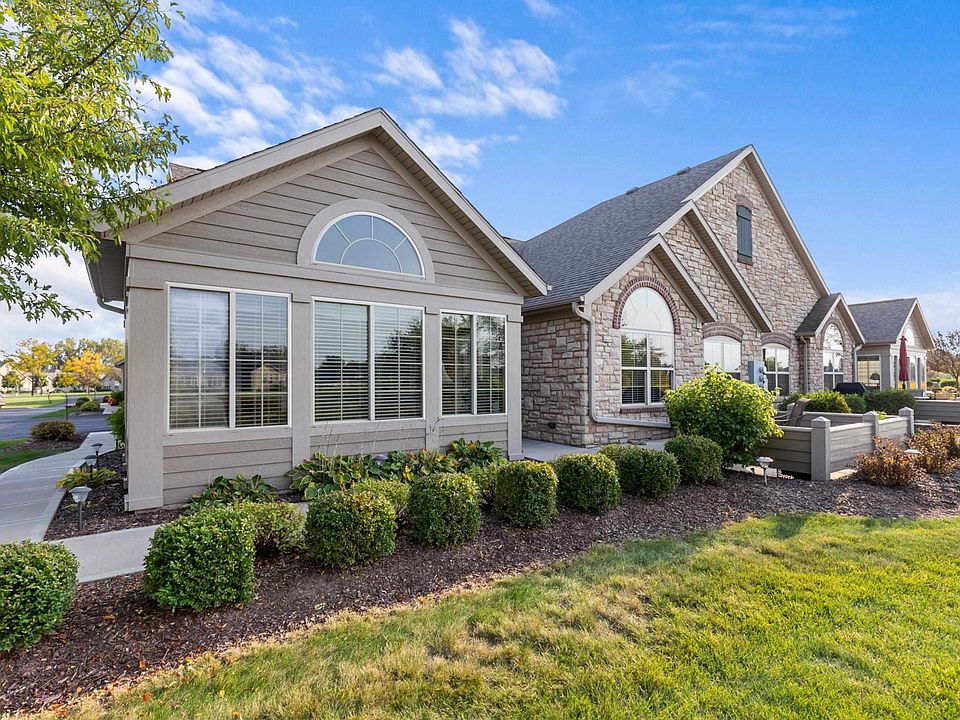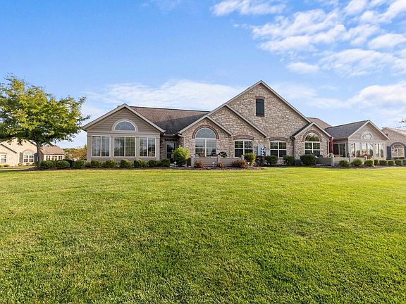 This stunning Canterbury style unit has soaring cathedral ceilings in every room, a wonderful layout w/large open spaces, sun room filled w/ gorgeous windows overlooking secluded back yard, beautiful kitchen filled w/ gorgeous maple cabinets, granite, large pantry. Large master en suite w/ full bath & large walkin closet. Large open living area w/ gas fireplace & arched windows.The Villas at Apple Creek is a vibrant highly sought after condo community in North Appleton centered around a clubhouse, fitness center w/ heated in ground salt water pool. Close to Hospital, HWY 41, restaurants etc.
