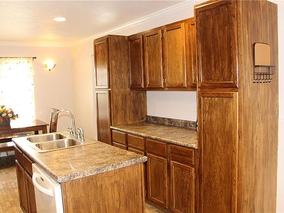 - Whirlpool Tub, Sump Pump, Kitchen Island, Stained Cabinets